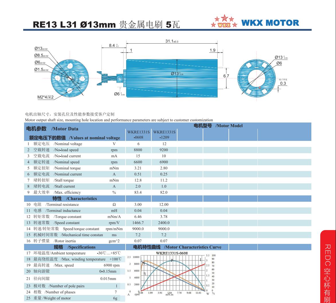 名義電壓: 6...12 V 轉(zhuǎn)矩上至: 0.92 mNm 空載轉(zhuǎn)速: 10600 min?1 堵轉(zhuǎn)轉(zhuǎn)矩: 2.9 mNm 外徑: 13 mm 長度: 20 mm